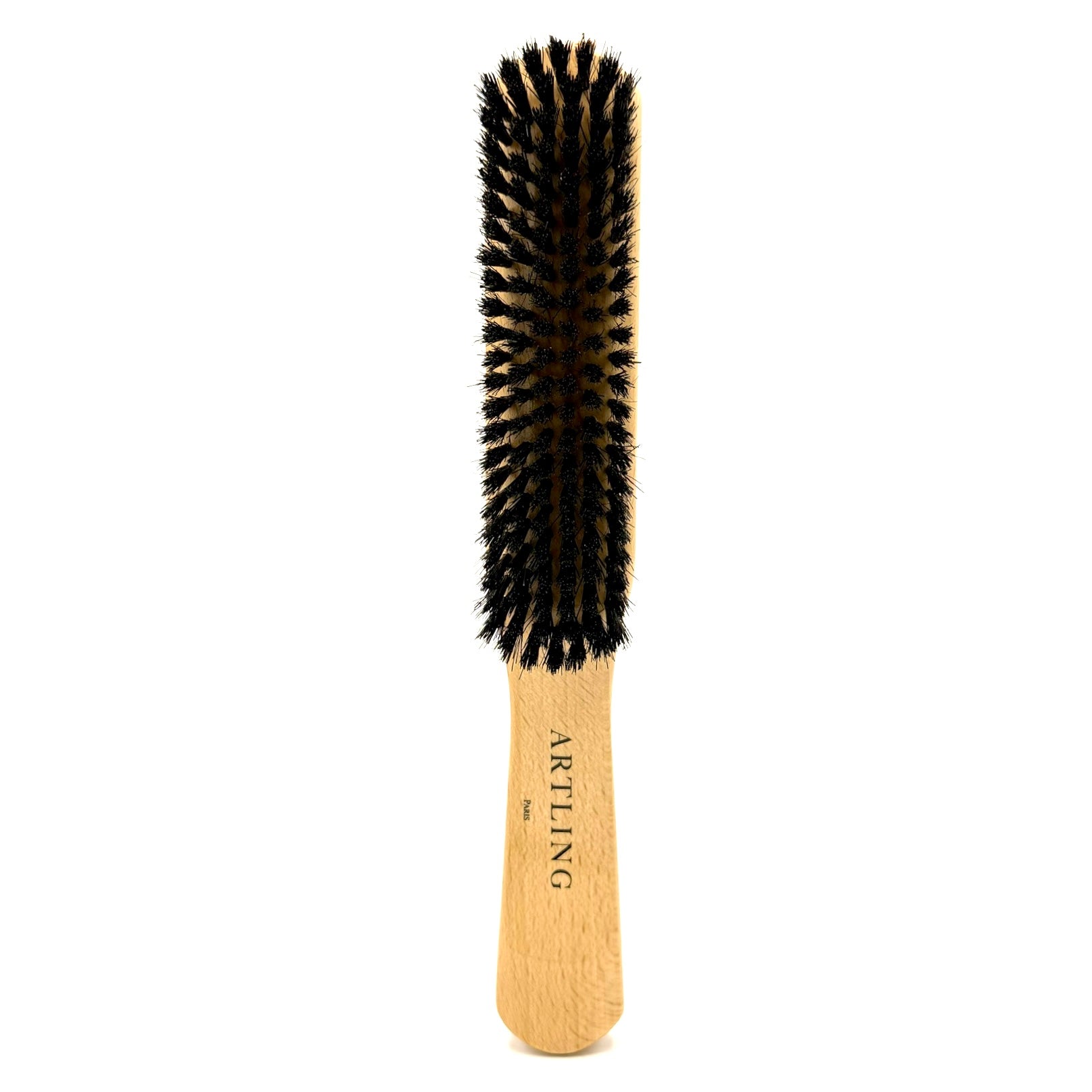 Brosse à vêtements avec un manche en bois de cerisier et dotée de poils naturels mi-durs noirs. Cette brosse est idéale pour nettoyer les vêtements et notamment les vestes et costumes. Tout type de tissus.